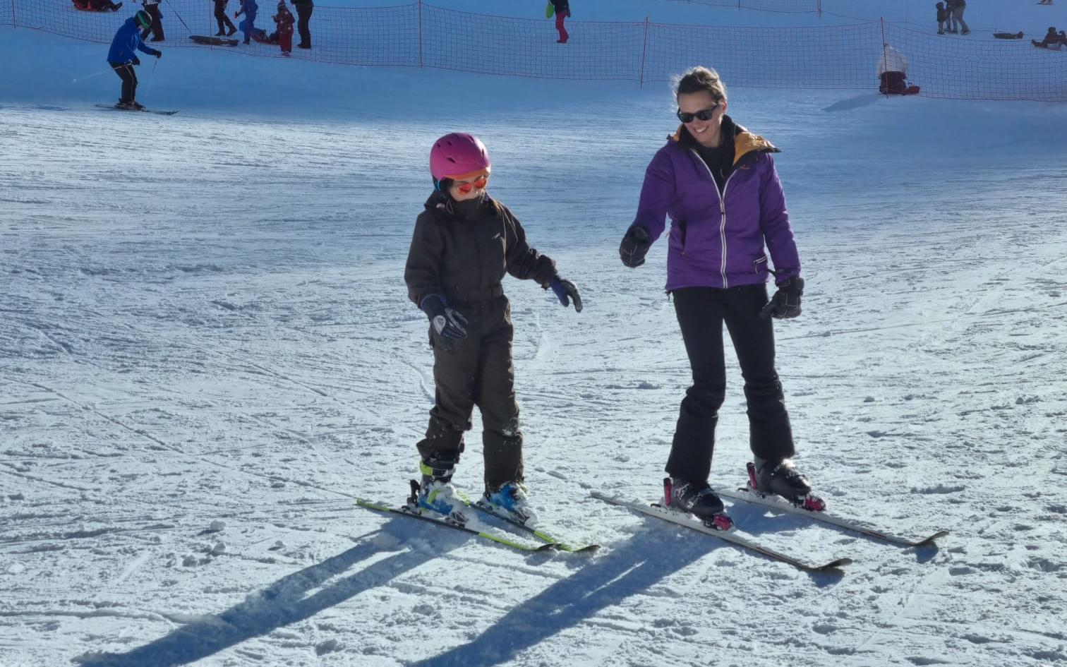 Découverte du ski pour Elodie et ses enfants.
